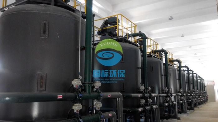 此項目采用“纖維過濾器+鈉離子交換器”工藝,以地表水為水源制備軟化水,出水硬度小于2mg/L(CaCO3),濁度小于2NTU,處理水量達600m3/h。